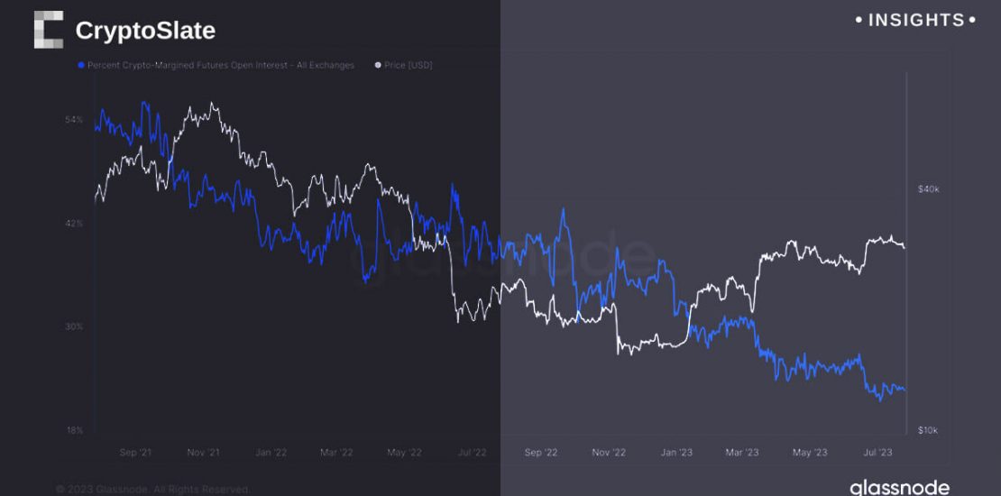 A noteworthy point is that the open interest is primarily composed of stablecoins or cash margin, as opposed to crypto or Bitcoin margin. This suggests a more risk-averse stance among investors, as they seem to avoid the additional risk associated with crypto margin. In essence, despite the growing interest in Bitcoin futures, investors do not appear to be taking a risk-on approach.
