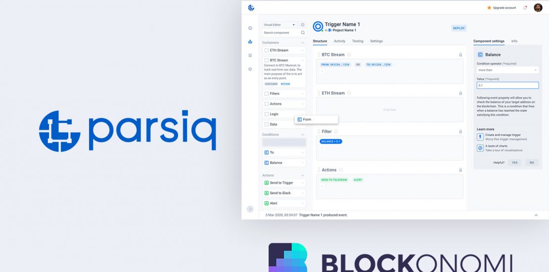 PARSIQ is a multi-level bridge between blockchains and off-chain applications, as well as a blockchain monitoring and workflow automation platform. In terms of offering a great view of blockchain data, it is an extremely valuable tool.